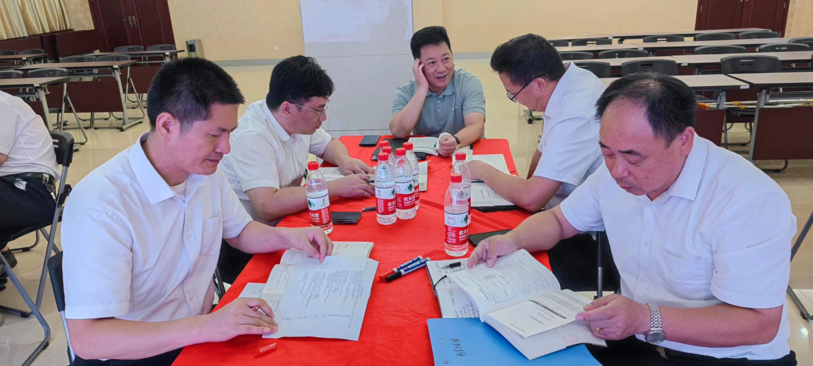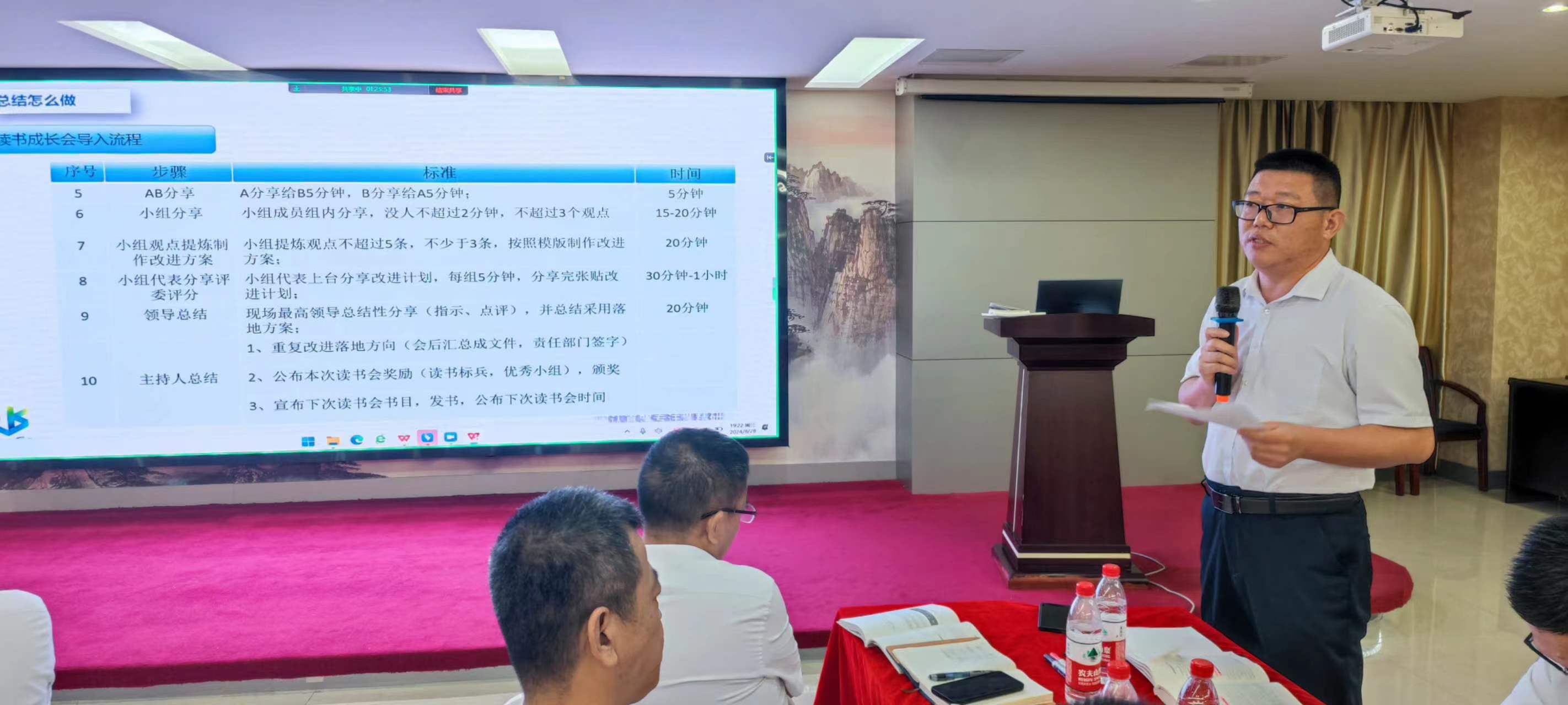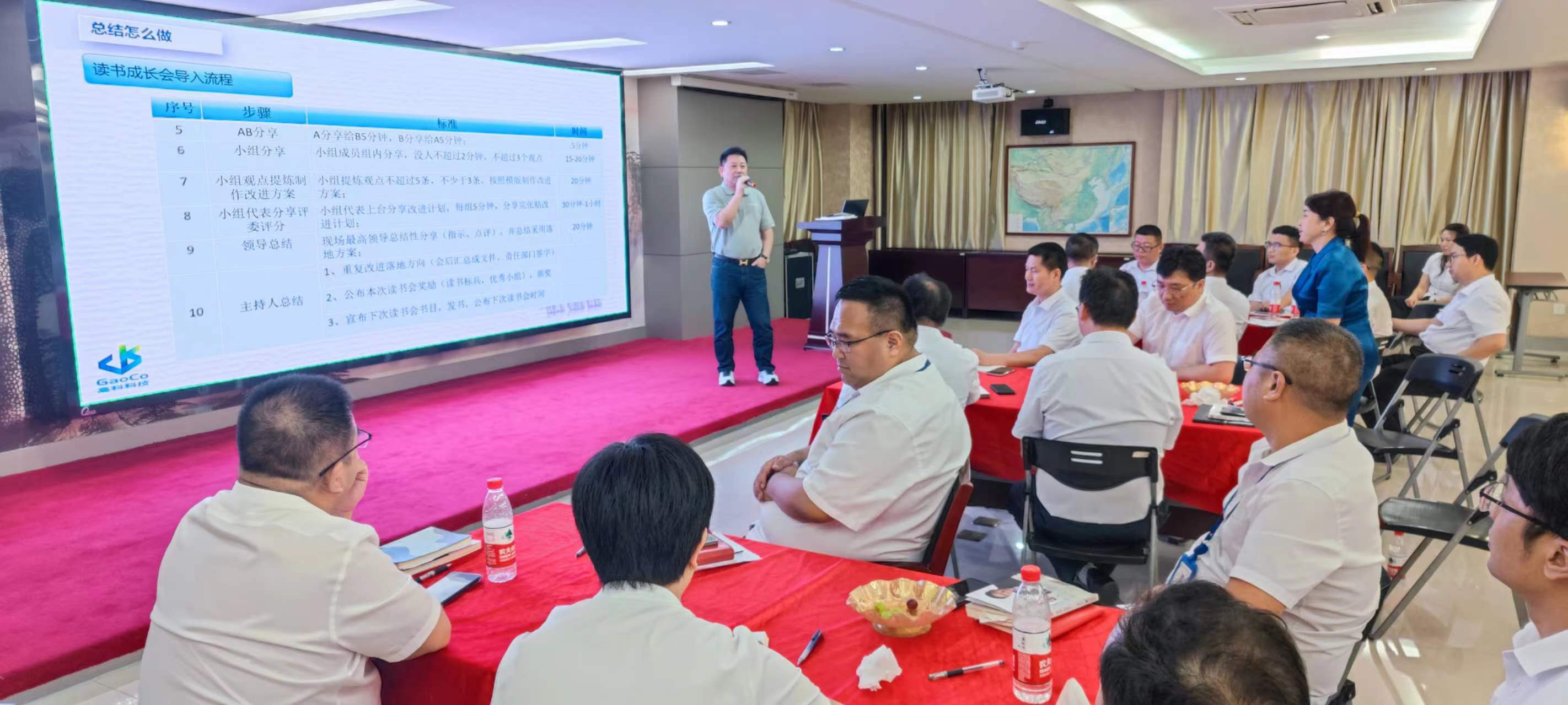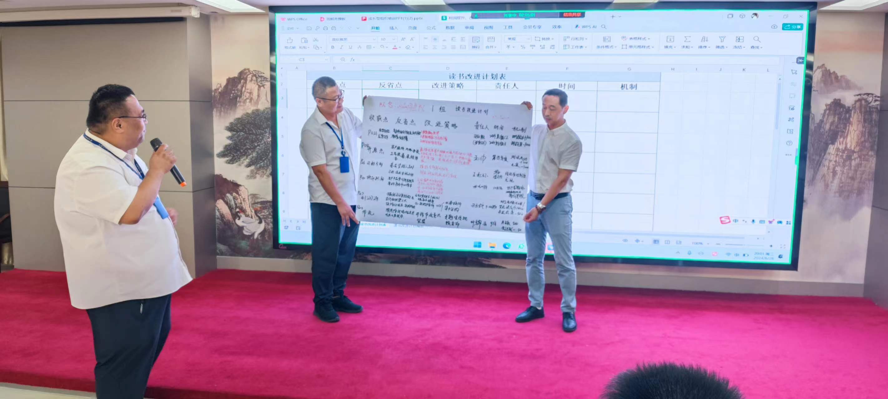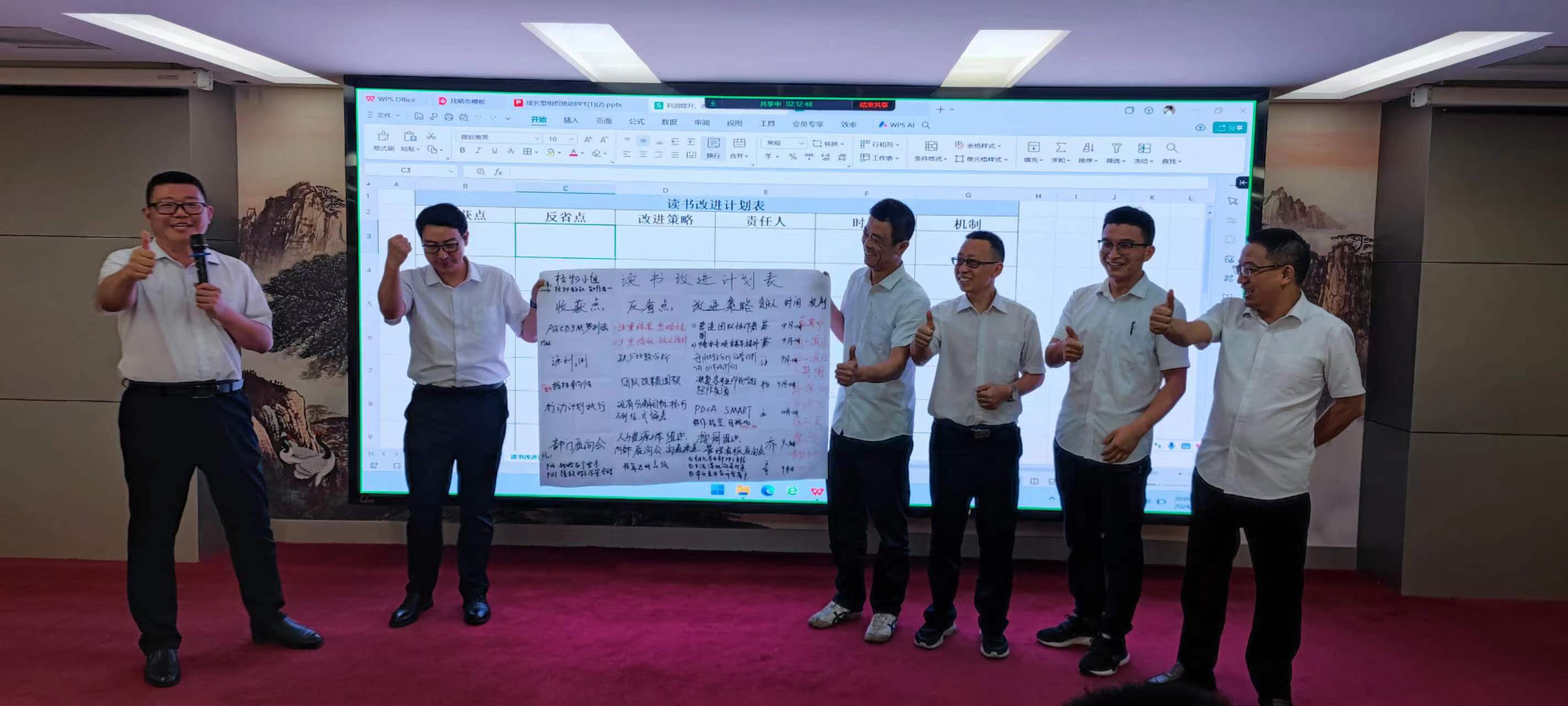 在交流環(huán)節(jié),每個(gè)小組組長分別上臺(tái)發(fā)表感言,所思、所想、所悟,并聯(lián)系實(shí)際工作中的不足與欠缺之處,以及有待解決或尚未發(fā)現(xiàn)的問題,大家暢所欲言,無不盡抒。每個(gè)小組根據(jù)收獲點(diǎn)、反省點(diǎn)、改進(jìn)策略、責(zé)任人、時(shí)間、機(jī)制相關(guān)內(nèi)容完成了本次學(xué)習(xí)的《讀書改進(jìn)計(jì)劃表》,并上臺(tái)宣讀、講解、公示。