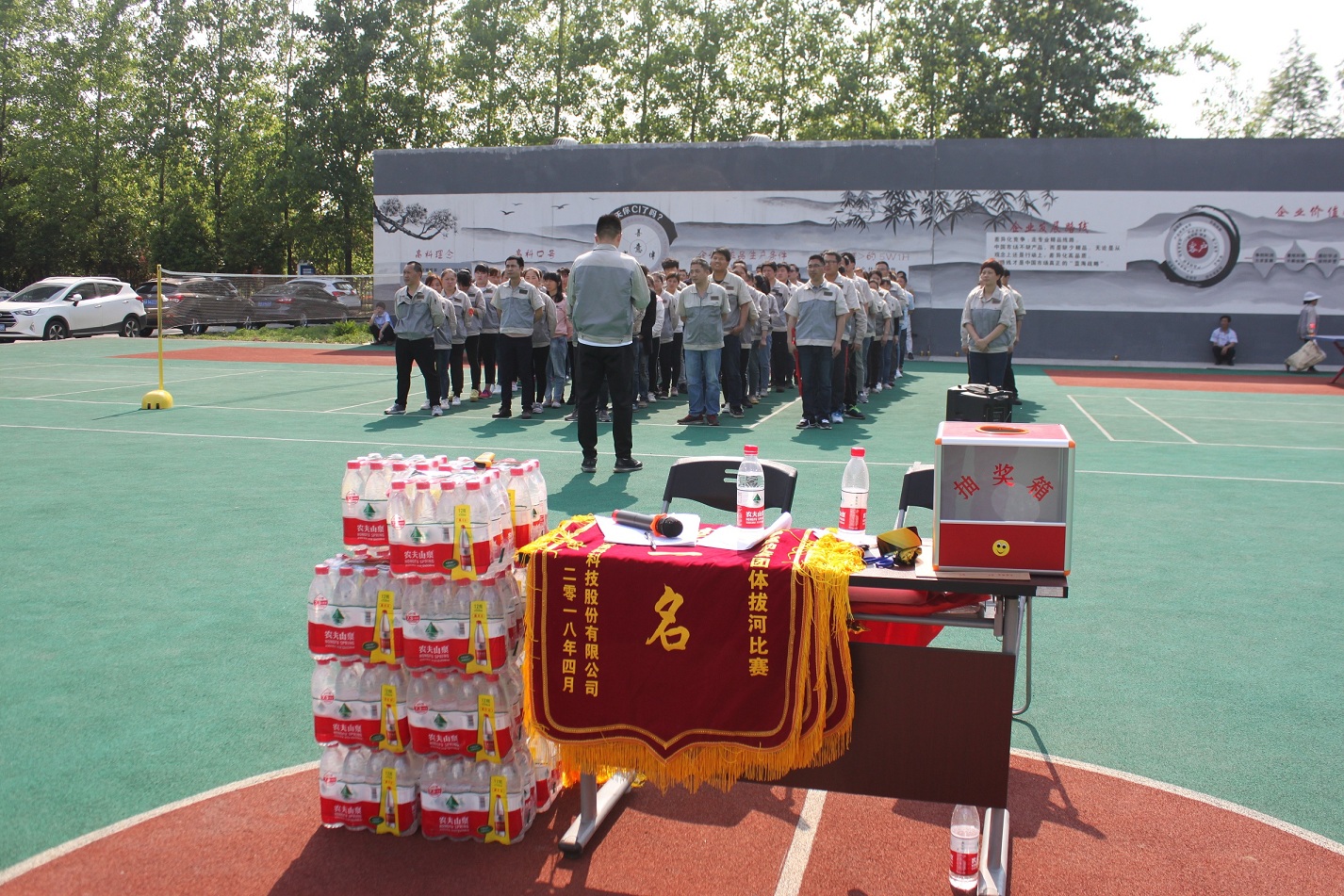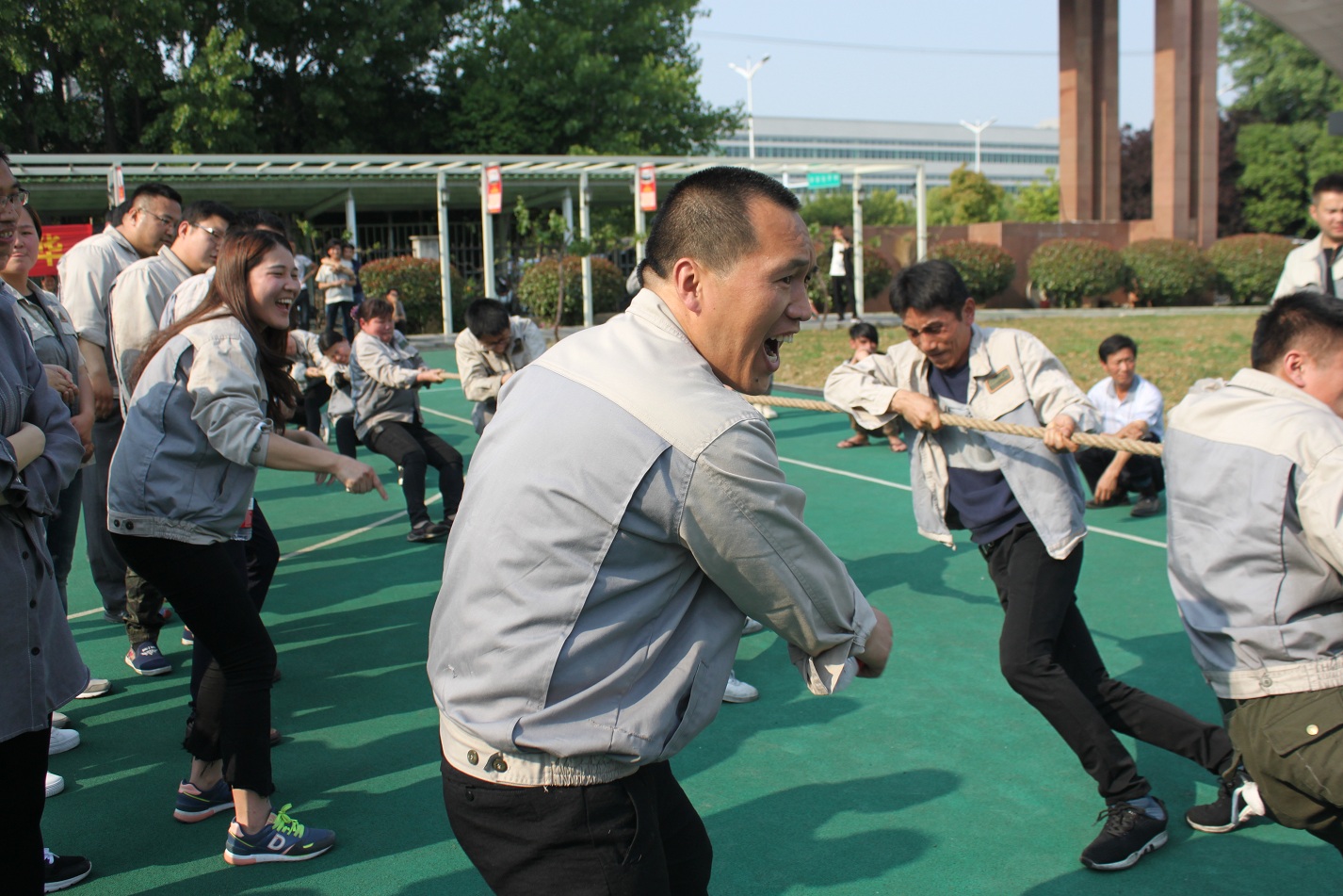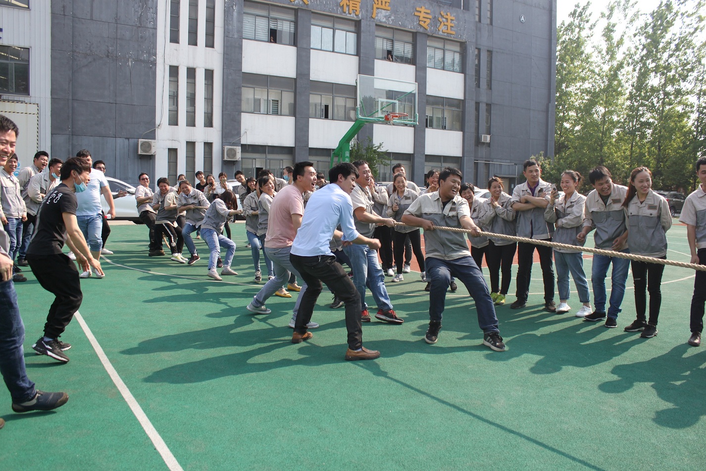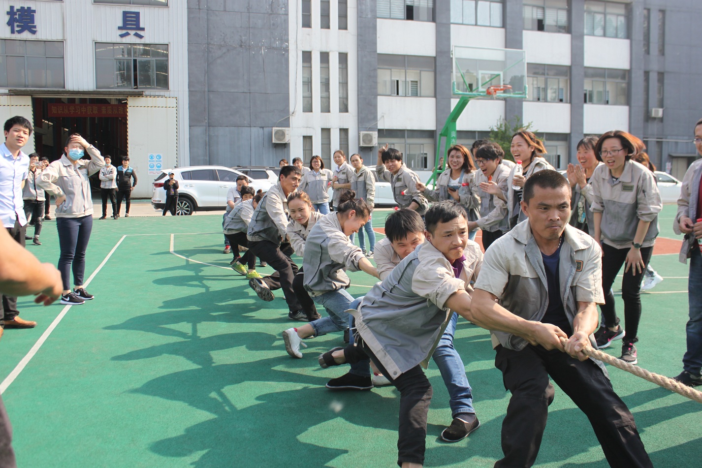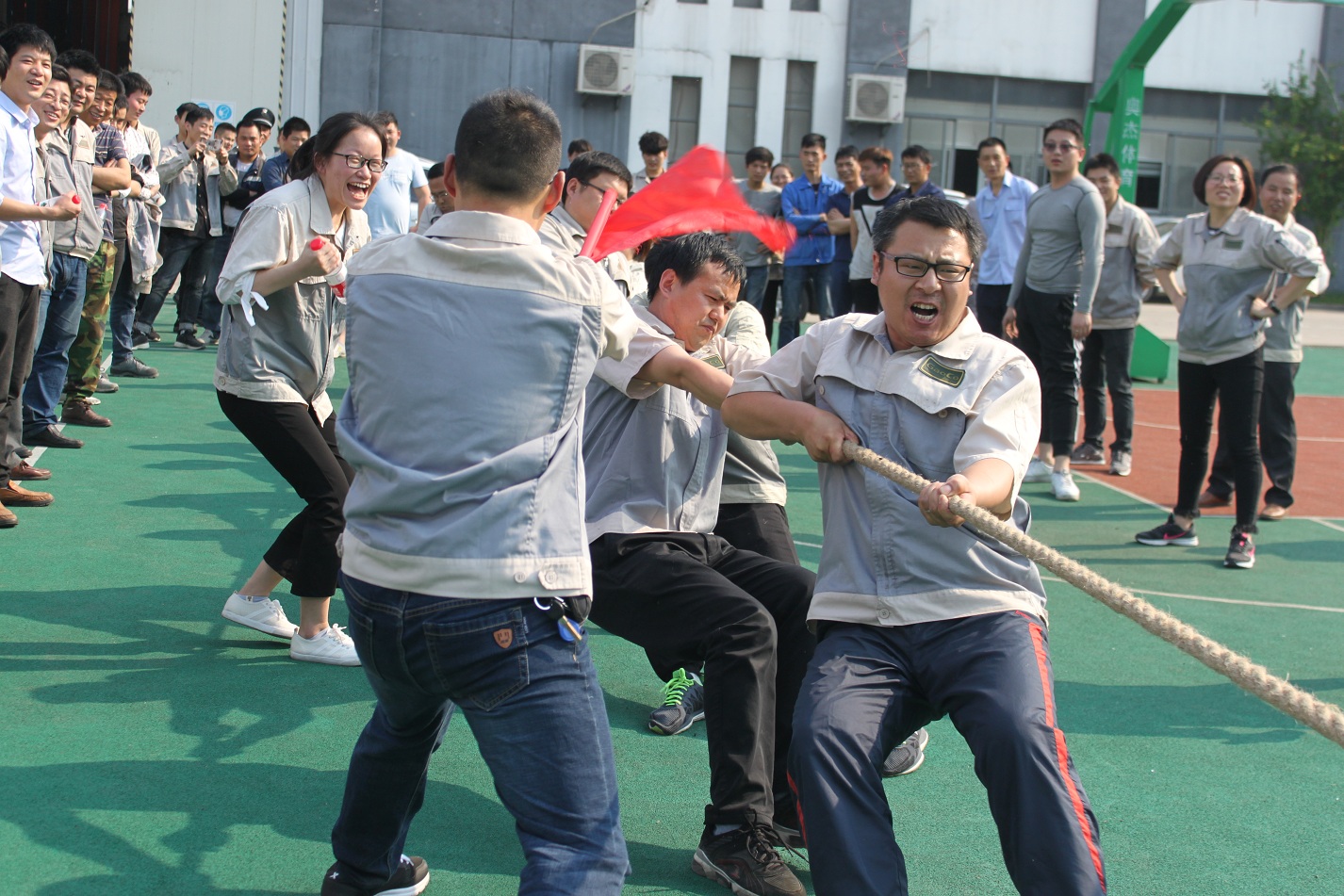 首先進行的活動是拔河,參與活動的共有七支隊伍,分別是:鈑金事業(yè)部一戰(zhàn)隊、鈑金事業(yè)部二戰(zhàn)隊、彩晶事業(yè)部戰(zhàn)隊、模具事業(yè)部戰(zhàn)隊、鈑金加工部戰(zhàn)隊、惠爾科戰(zhàn)隊、職能部門戰(zhàn)隊,每個戰(zhàn)隊分別由5男5女組成,共10人。