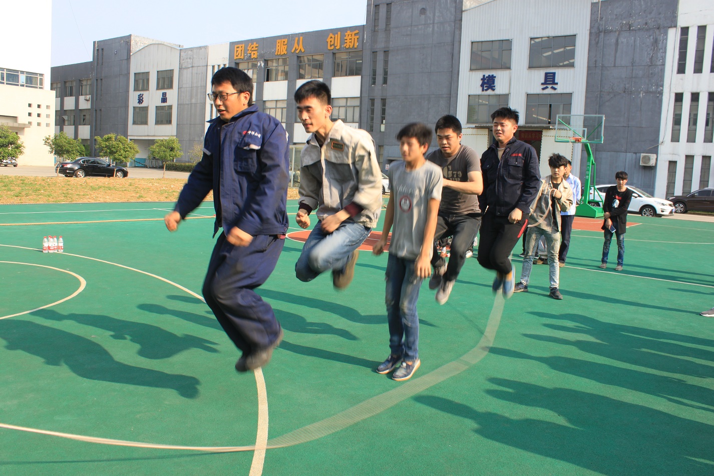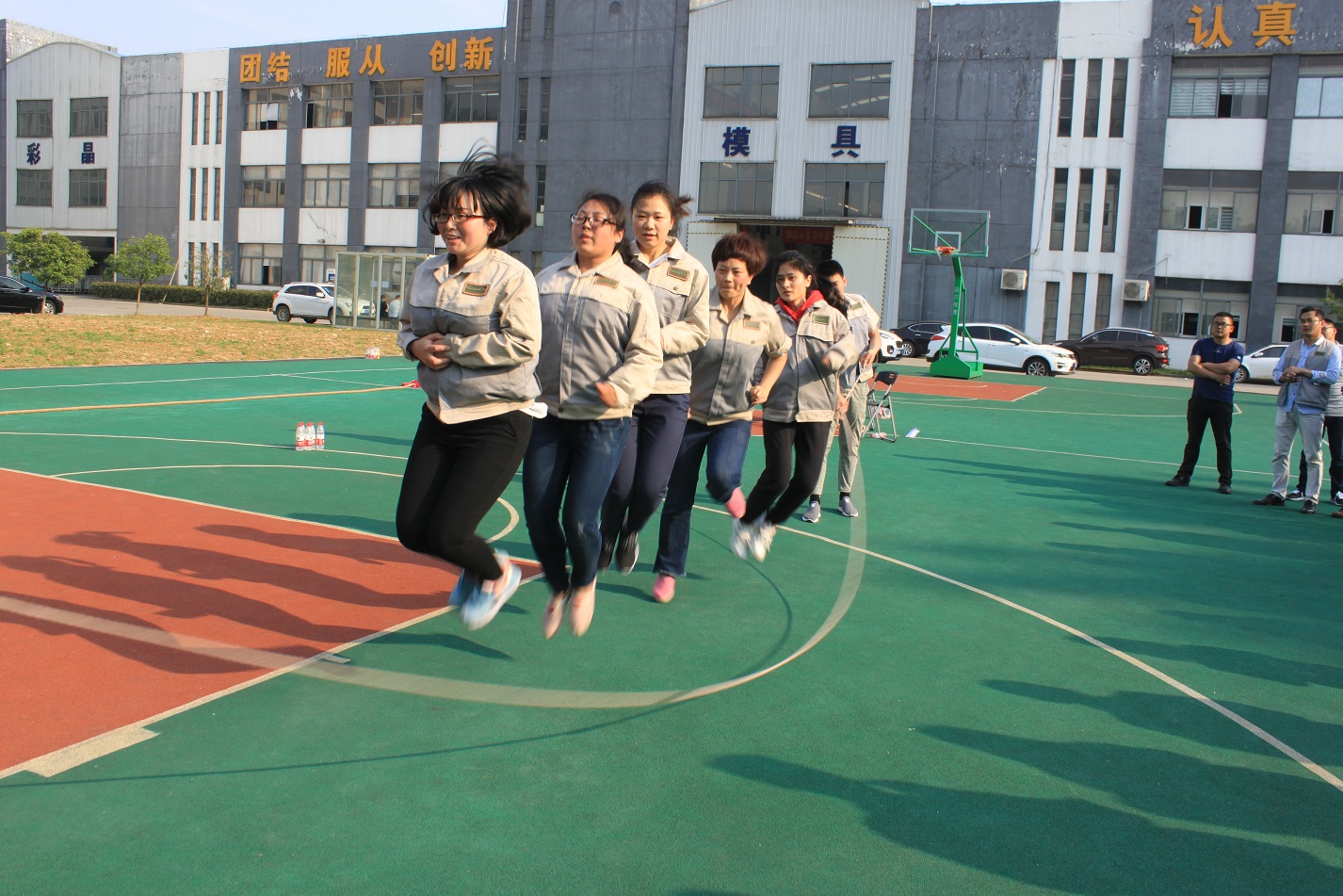 本次活動的第二項比賽是跳繩——團體跳,每個事業(yè)部各派出一隊,共六支隊伍,每隊七人,男女不限,兩人甩繩,五人跳,這樣既展現(xiàn)了團隊的默契程度,又體現(xiàn)了團隊的協(xié)作精神,這也是合肥高科的主旨文化。跳繩的規(guī)則是一分鐘時間內(nèi),以團隊成功跳起的個數(shù)計算,跳繩過程中可以停頓,以一分鐘結束時的次數(shù)為最后成績。