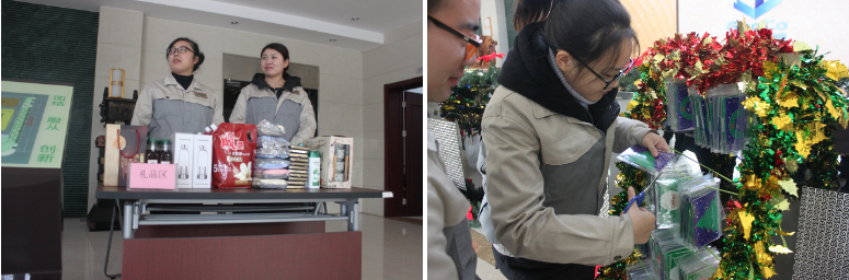 整個(gè)活動(dòng)現(xiàn)場(chǎng)全程的為大家播放有關(guān)的圣誕歌曲,烘托了現(xiàn)在氣氛,最熱鬧、激動(dòng)人心的是抽獎(jiǎng)環(huán)節(jié),每個(gè)獎(jiǎng)品都寫在賀卡里,賀卡里有實(shí)物獎(jiǎng)和新年祝福語!